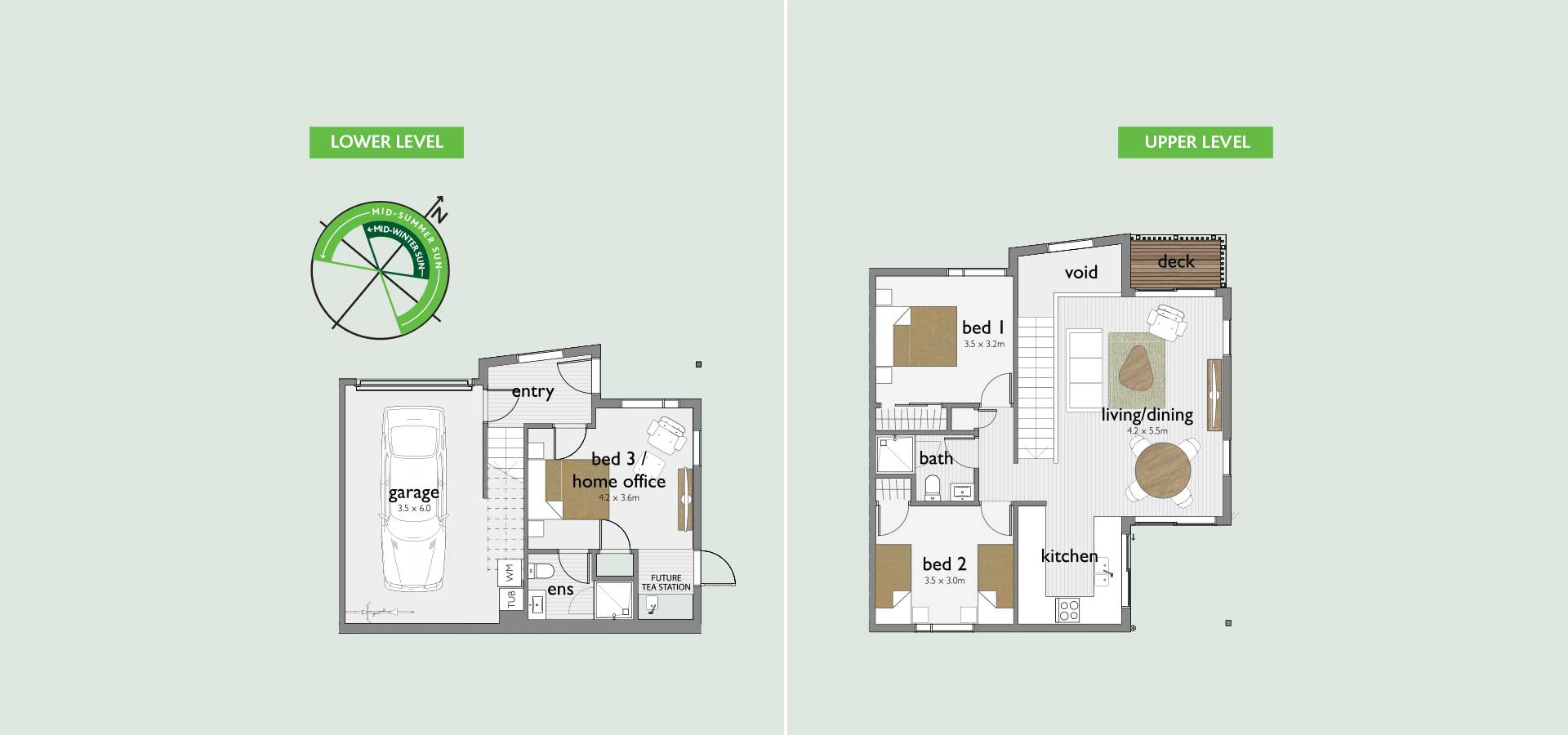 Upstairs living opens to a North/West-facing deck and courtyard, while downstairs offers internal access and a large multi-purpose room. Every detail has been considered — all that’s missing is you.